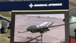 FARNBOROUGH, ENGLAND - JULY 23: A General Atomics MQ-9B SeaGuardian, a remotely piloted aircraft system (RPAS) model, is displayed in front of a display screen during the Farnborough International Airshow 2024 at the Farnborough International Exhibition and Conference Centre on July 23, 2024 in Farnborough, England. Farnborough International Airshow 2024 is host to leading innovators from the aerospace, aviation and defense industries. (Footage by John Keeble/Getty Images)