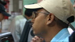 Busy McDonald's fast food outlet, queues of people waiting at counters / Young Indian man eating burger and fries / McDonald's staff serving customers at tills / Young Indian woman waiting to be served in hectic McDonald's outlet