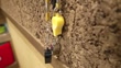 This clip features two whistles hanging from a bulletin board inside a roller skating rink.