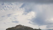 Gentoo penguins (Pygoscelis papua) on the top of the rocks with white clouds in the sky. Filmed in January 2015, Port Lockroy, Wiencke Island, Palmer Archipelago, Antarctica