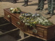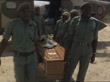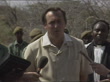 George Adamson funeral; KENYA: Kora Nature Reserve:G/A Kenyan Air Force Heli coming in to land bringing body of George Adamson (Naturalist) for funeralCMS Lioness in cageCMS Rangers from Wildlife Dept carrying coffin alongCMS Actors Bill Travers & Virginia McKenna at gravesideMS Rangers standing to attention next coffin TCMS Coffin above graveCMS SIDE Colleague weeps as comforted by otherMS Dr Richard Leakey (Kenya Wildlife Conservation Dept) statement- gives his word as a member of the Kenyan Govt that peace will return to the Game Parks SOFMS Rangers fire a volley of shots in salute SOFCMS Last Post sounded on bugle SOFMS Rangers standing to attention SOFMS Coffin lowered into grave SOFTX:2.9.89/17.00