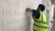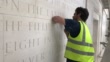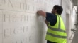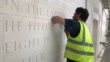 VER-SUR-MER, FRANCE - JUNE 3: George Edwards carves a quote from Winston Churchill on the new British Normandy Memorial. As part of the D-Day 76th Anniversary the Normandy Memorial Trust releases new images and footage of the site in Normandy, France, on Friday June 5, 2020. Owing to the coronavirus outbreak a previously arranged visit by more than 70 Normandy Veterans was cancelled and construction on the site temporarily suspended. (Footage by Gus Fisher/Normandy Memorial Trust Via Getty Images).