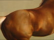 George Stubbs exhibition; ENGLAND: London: National Gallery:INTMUSIC OVERLAY: Unidentified classical music:CMS Detail of horse painting "Whistlejacket" by George StubbsLA LMS Large horse painting on wall in gallery as two people up to itMS Detail of painting "Whistlejacket" PANMUSIC Ends