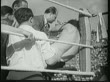 B/W 1951 Gerhard Hecht (in pain) sitting in corner talking to trainers / Berlin / newsreel