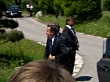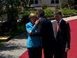 CLEAN: German Chancellor Angela Merkel and husband Joachim Sauer welcome British Prime Minister David Cameron. G7 member states continue their 2-day summit at the Schloss Elmau in Bavaria, southern Germany.