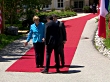 CLEAN: German Chancellor Angela Merkel and husband Joachim Sauer welcome Itallian Prime Minister Matteo Renzi. G7 member states continue their 2-day summit at the Schloss Elmau in Bavaria, southern Germany.