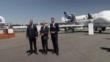 SCHOENEFELD, GERMANY - JUNE 22: German Chancellor, Olaf Scholz (C) poses with Rene Obermann and Michael Schöllhorn, President BDLI in front of an Eurodrone on the first day of the ILA Berlin 2022 air show on June 22, 2022 in Schoenefeld, Germany. This year's is the first ILA to be held since 2018. It will run from June 22 through June 26. (Footage by Christian Ender/Getty Images)