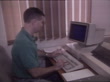 Various of Grenville Redman and Alan McCready (N Ireland Construction workers) in offices working at VDUs