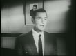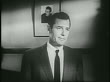 B/W 1955 Gig Young talking to someone off screen / photo of James Dean on wall in background / PSA