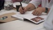 BARCELONA, SPAIN - APRIL 23: Gimena Romero, the author of "Mexico bordado", signs a book during Sant Jordi day on April 23, 2023 in Barcelona, Spain. Sant Jordi day, Saint George in english, is the patron saint of Catalonia. Tradition says that boys give their partners a rose, and they get a book in exchange. (Footage by Xavier Mostacero/Getty Images)