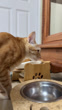 Ginger cat eating cat food