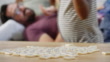 Close up girl playing with scrabble tiles on coffee table, rack focus