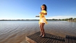 A black woman form Brazil is dancing the Samba on a boat pier. More of this model in portfolio.
