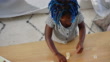Girl stacking scrabble tiles on coffee table - 4K stock video