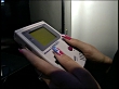 CU Girl with Long Painted Nails Playing on a Game Boy