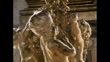 Sequence of close-up tracking shots past ornate glass chandeliers and gold statues in the Hall of Mirrors in the Palace of Versailles, France; 1985. Shots include a low angle view passing under a chandelier, close-ups of gold figures holding up glass candelabras and a spinning low angle view looking up at another chandelier. (LSFF057S - AEVZ001J)
