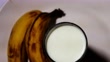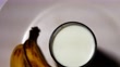 Glass of milk and banana rotate on white background at morning - 4K stock video