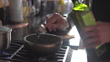Avocado oil is poured out from a glass bottle into a measuring cup in preparation to make the Korean healthy food dish Bibimbap in the kitchen of a private home.stock - 4K video resolution
