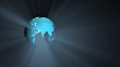 A 3D rendered globe. The oceans are cutout and a volumetric light is placed inside the sphere. Loop-able.