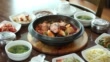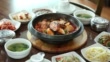 Godeungeo-jorim (Braised Mackerel) in the pot and side dishes on the table (Korean food), Jeju Island - HD stock video