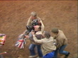 TMS Donald Sutherland in redcoat outfit TOWARDS PULL OUT as camera hand-held follows R-L with Hugh Hudson (Dir)