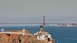 Aerial shot of the Golden Gate Bridge viewed from the Point Bonita Lighthouse at the entrance of the San Francisco Bay. Shot in CA, USA.