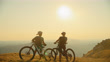 Golden Hour Wayfinders: Two Cyclists Trace the Valley's Secrets from Their Mountain Perch - 4K stock video