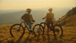 Slow motion shot. Backlit by the dying sun, two riders stand at the cliff's edge, their fingers tracing unseen paths across the valley below. Their bikes lean like compass needles beside them, still humming with the memory of the climb. The wind carries their conversation.