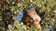 Perched high in a juniper tree, a golden-mantled ground squirrel eats and packs away ripe juniper seeds in his chubby cheeks in the Browns Park National Wildlife Refuge in northwestern Colorado.