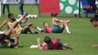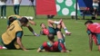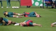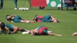 HASEWINKEL, GERMANY - JUNE 25: (L-R) Gonçalo Inácio and Cristiano Ronaldo of Portugal stretch during a training session ahead of UEFA Euro 2024 Group F football match against Georgia in Marienfeld, a district of Harsewinkel City on June 25, 2024 in Harsewinkel, Germany. (Footage by Sascha Schuermann/Getty Images)