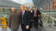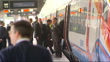 Gordon Brown at St Pancras Station; ENGLAND: London: St Pancras International Station:EXTJohn Denham MP (Innovation, Universities & Skills Secretary) along to station entrance as speaking on mobile phone/ Ed Balls MP (Schools Secretary) along towards station entrance - igonrores reporter's question about Elliot Morley expenses scandal/ Gordon Brown MP (Prime Minister) out of car and into station entrance with staff - ignoring reporter's repeated questions about Eliot Morley SOTINTGordon Brown and entrourage across station concourse, up escalators, through ticket barriers, along platform and onto train/ Police officers with sniffer dog at platfrom entrance/ destination board showing Derby train