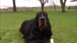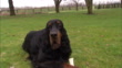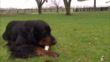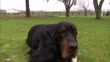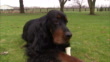 A Gordon Setter lying on the grass chews a bone. - HD stock video