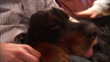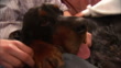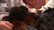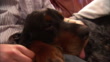 A Gordon Setter pants as hands rub the dog's coat. - HD stock video
