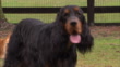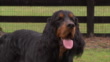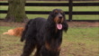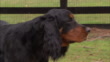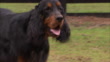A Gordon Setter stands with its tongue hanging out as another dog relaxes nearby. - HD stock video