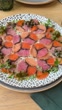 Gourmet carpaccio platter featuring salmon, tuna, and white fish. - 4K stock video