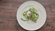 WS HA Gourmet meal on white plate / Great Tew, Chipping Norton, UK