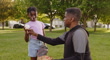 Grandfather and Granddaughter Practicing Baseball in a Park - 4K stock video