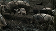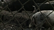 Shot with an ENG camera look on a slider, motion and a touch of iris control occur as several pigs interact in a pig pen.
