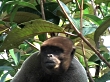 In the trees of the amazon rain forrest a gray monkey (Lagothrix Cana -- Geoffroy's Woolly) looks around and then eats