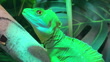 Green basilisk (Basiliscus plumifrons) reptile on display at...