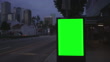 Green wrinkled poster template in city. Glued paper mockup. Empty street art sticker mock up. Clear urban glued advertising canvas. Billboard advertisment advertiser. - 4K stock video