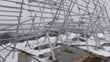 GREENLAND - DISKO BAY - EXTERIOR - OVERCAST - AASIAAT - EMPTY WOODEN FISH DRYING RACKS IN SNOW AT ABANDONED FISHING TERMINAL AT TRANSITØEN ISLAND - 4K stock video
