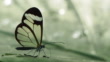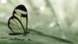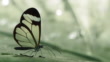 A Greta oto buttelfly feeding with its spiritrompa of some type of salts in a leaf. This tropical butterfly is very special for its transparent wings. - HD stock video