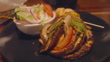 Grilled Octopus over Rice - Mexican Seafood Restaurant - Chips, Ceviche, Corn, Salad - Close Up - 4K stock video