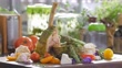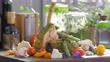 Grilled veal chop rubbed with pesto paste, served over veggie summer mix. - 4K stock video