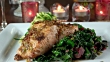 Grilled Wild Salmon Filet with Collard Greens and Zoodle - 4K stock video