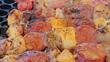 Grilling meat skewers - Street food - 4K stock video