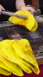Grilling rice crackers on charcoal metal grate - 4K stock video
