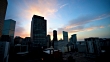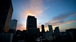 Growing Denver Colorado Downtown Cityscape 2018 looking up from high roof top angle on an amazing dramatic Rocky Mountain Sunset