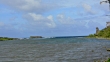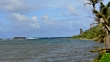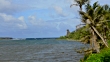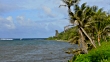 Guam USA Territory palms and waves at Bear Rock in South Guam